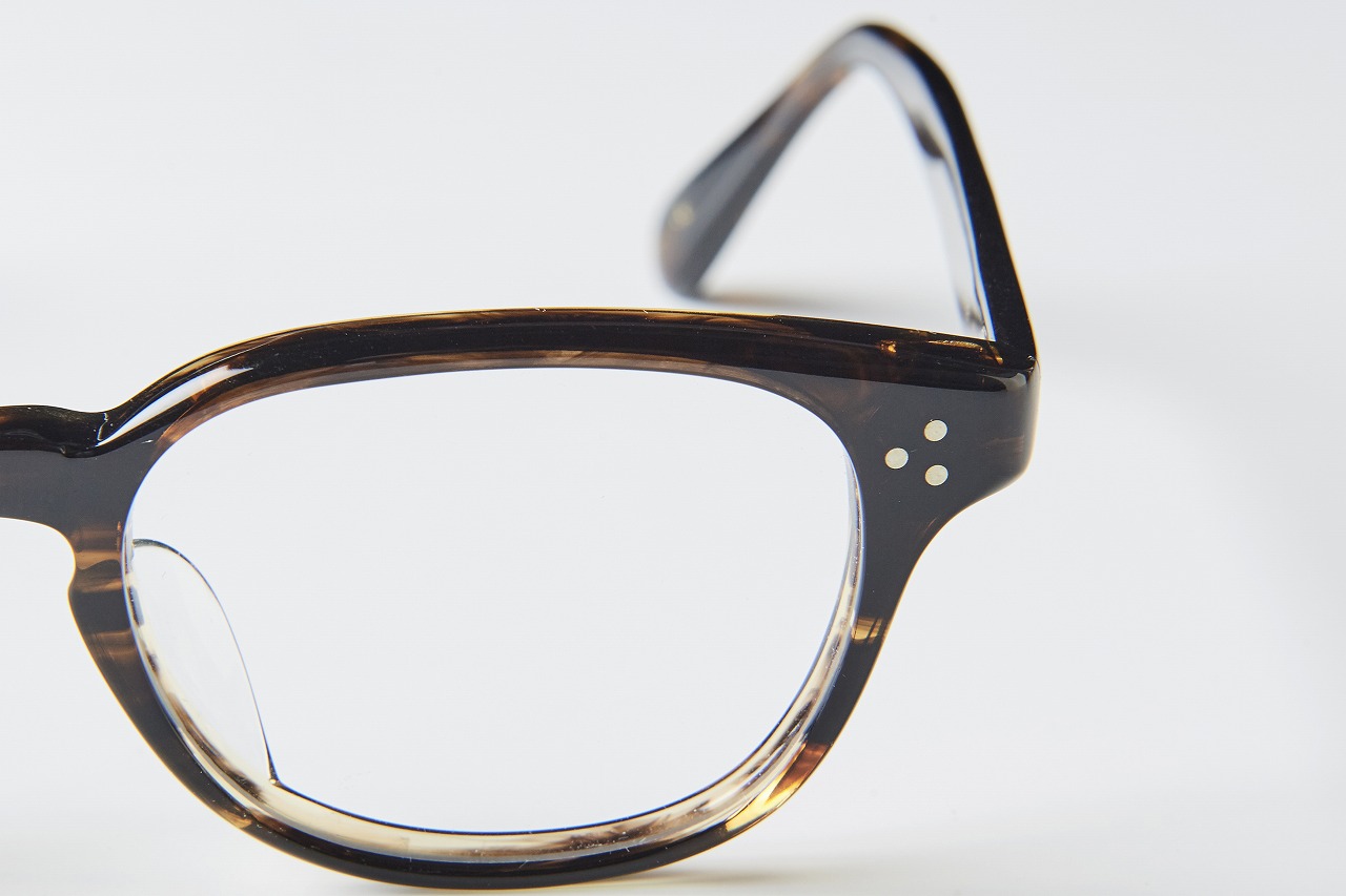 ▲オリバーピープルズのメガネ。シンプルなデザインのなかに、ひとつひとつ丁寧に作られたパーツが光る。価格は3万円(税別・フレームのみ)