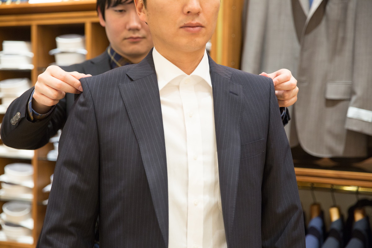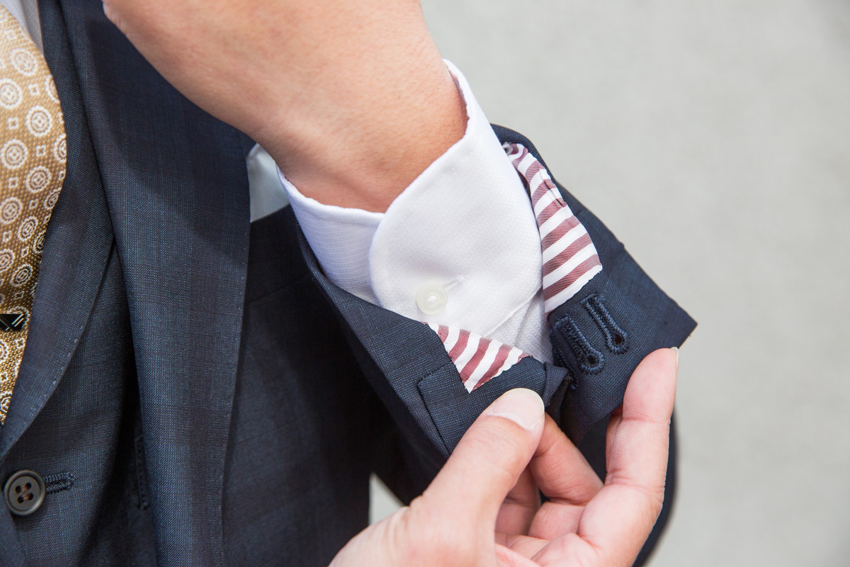 なんと襟裏の生地まで選択可能。ジャケットの襟を立てて着ることはありませんが、見えないオシャレここに極まれり、といった感じです。こだわりをとことん詰め込めるのがオーダースーツの魅力ですね。