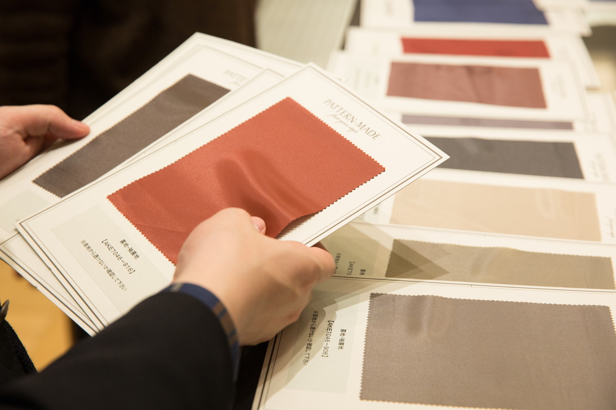 もちろん裏地も選べます。普段は見えない箇所なので、思い切って派手なカラーを選ぶのもアリ。ジャケットを脱いだときに存在感を放つ、そんな隠れたオシャレに気分が上がります。