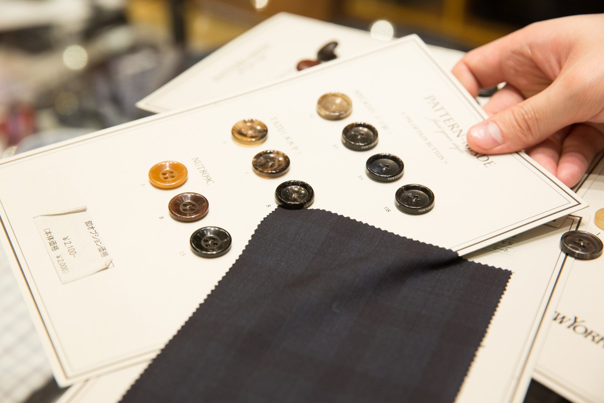 ボタン選びなんて当たり前。ニューヨーカーでは水牛の角など高級素材も多く用意されており、生地の雰囲気や好みに合ったボタンが選べます。