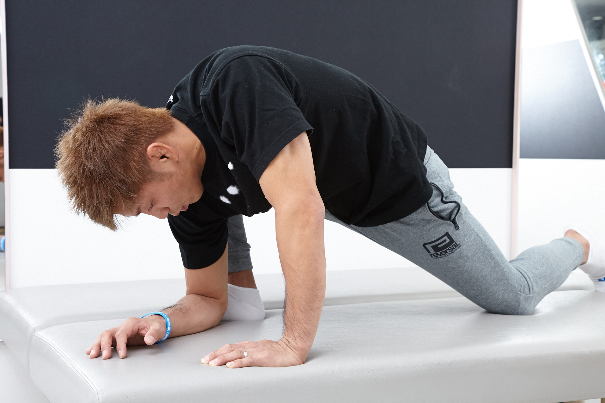 「……さて、やっぱりどうしても身体が固そうなのが気になるんですよね。所選手もお気に入りの『肩胛骨はがし』を体験していかれませんか?」