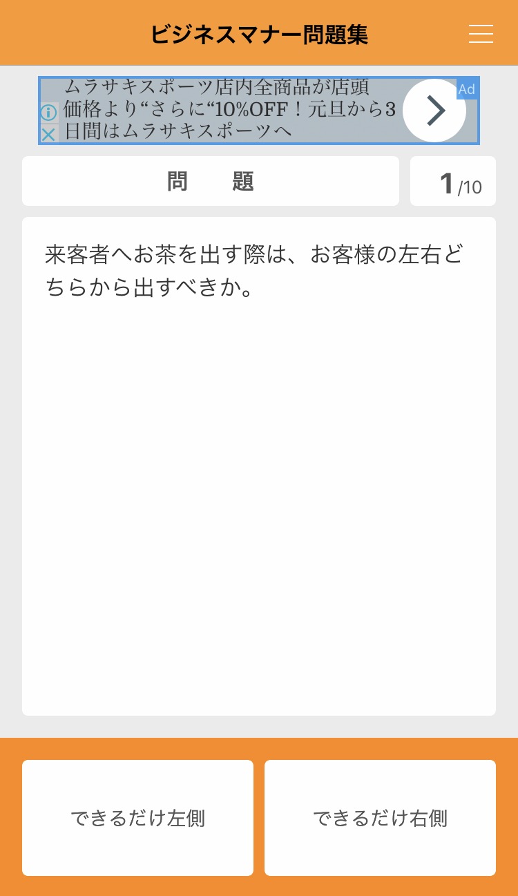 クイズ形式を取り入れたビジネスマナー学習アプリはたくさんあるんですが、こちらの最大のセールスポイントはとにかくシンプルなこと。2択~4択の問題を10問、サクサクと答えていくと、最後に成績が表示されます。間違えた問題はそこから見直しも可能。進行の仕方がまだるっこしかったり、核問題の解説がくどくどと長すぎたりするアプリも多い中で、このサクサク感はナイス。休みの間にゲーム感覚でビジネスマナーを学び直すにはピッタリのアプリです!