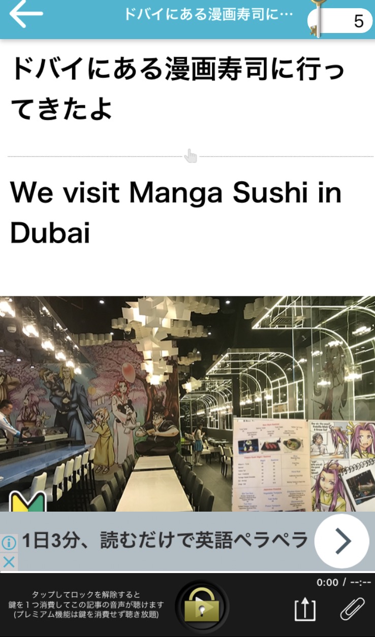 もう一つ英語関連のアプリを。こちらは最近のニュースを分かりやすい英語で紹介してくれる優れもの。英会話や基本的な単語を学ぶアプリはたくさんありますが、時事的な話題を英語でどう言えばいいかはなかなか分からないもの。でも英語のニュースサイトは読むのが大変……そこで、文章を短く区切って日本語訳と同時に表示してくれるこのアプリの出番なのです。話題も幅広く取り上げられているので、会話のネタ探しにもバッチリ!