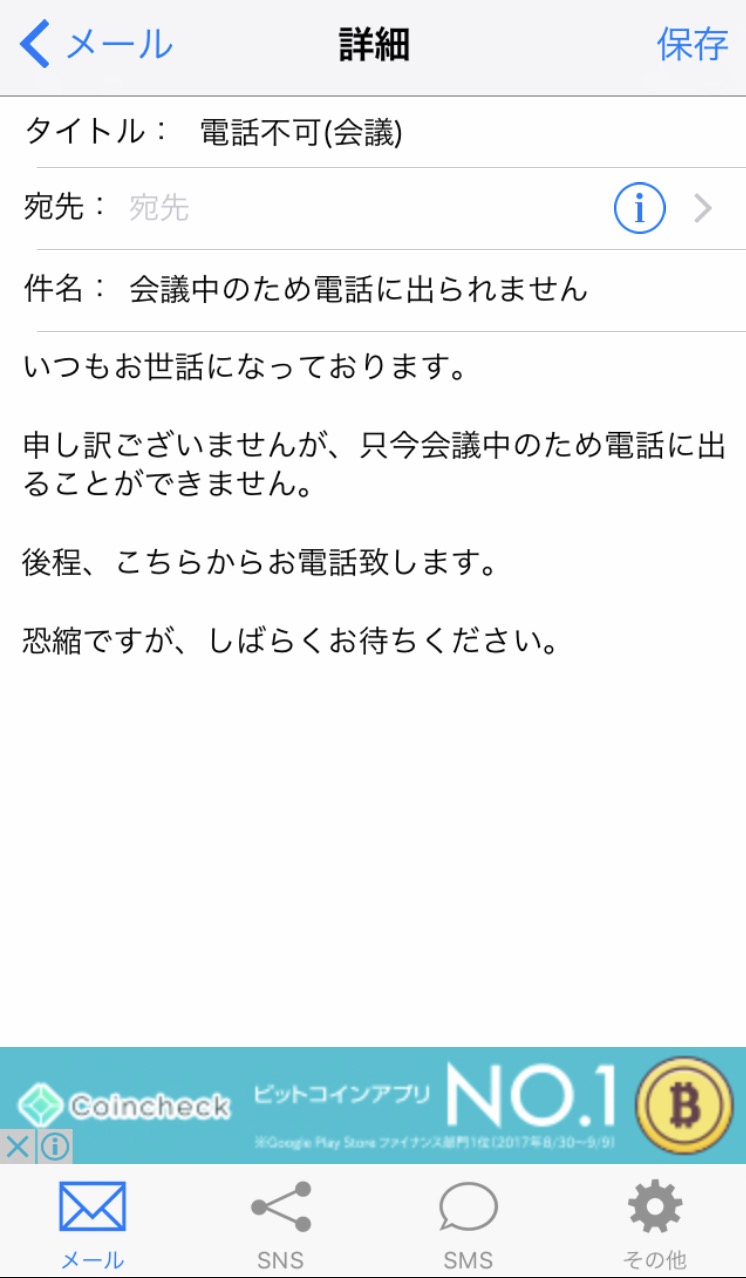 遅刻しそうな時、緊急の連絡が必要になった時など、スマホからでもメールが打てるのは便利だし、予測変換で打つスピードも上がったのはいいんですが、慌てて打つとシャレにならないミスをしてしまうことも。「あーっ! 上司宛てなのに『遅れるよ~ん』って送っちゃったー!」なんて悲劇を繰り返さないためにも、このアプリに入った定型文を利用すれば確実! 細かい部分は手打ちで変更できるし、SNS、SMSにも対応しているのもうれしい。アプリを利用しながら、適切な文例を身に付けましょう。