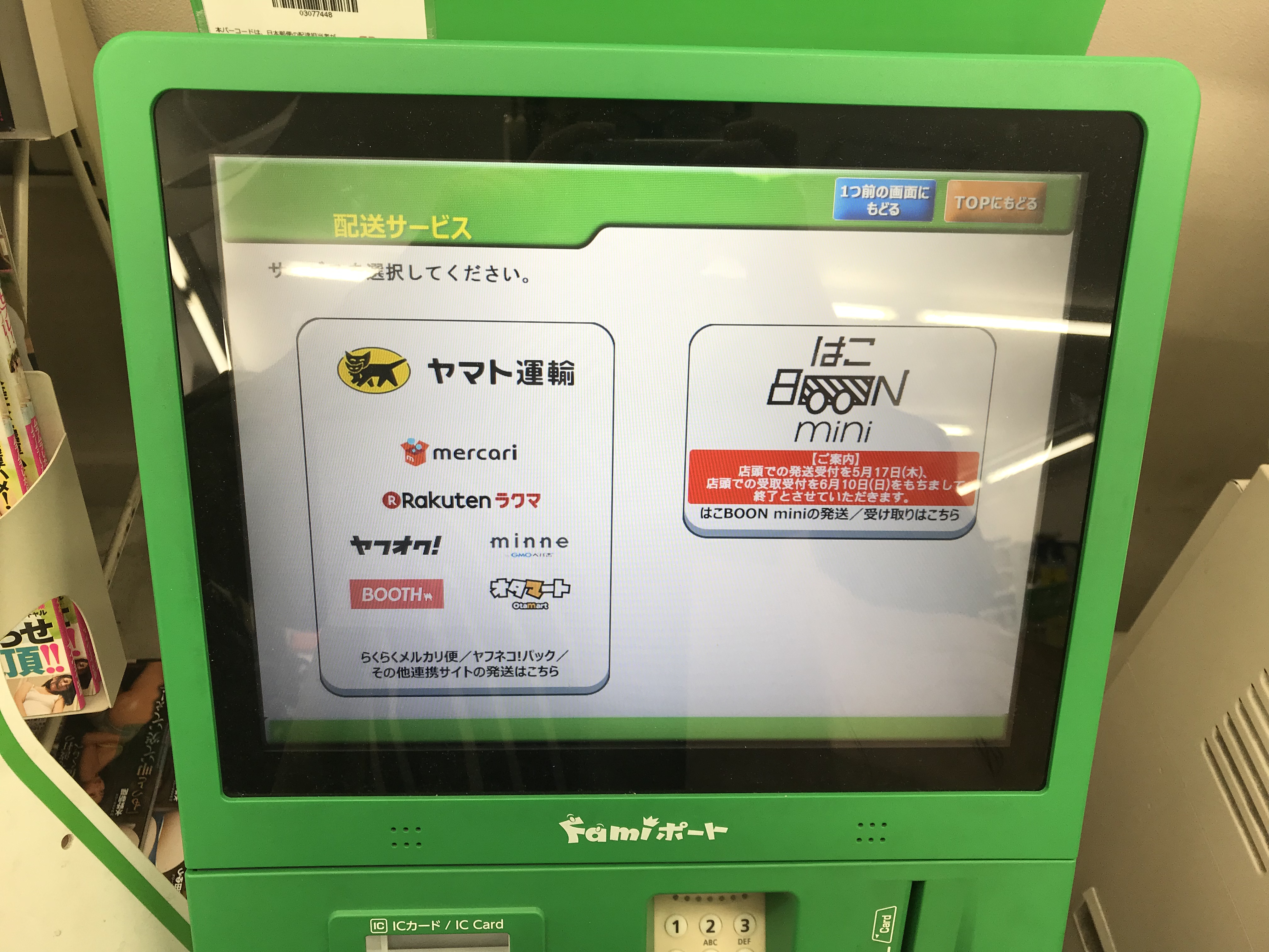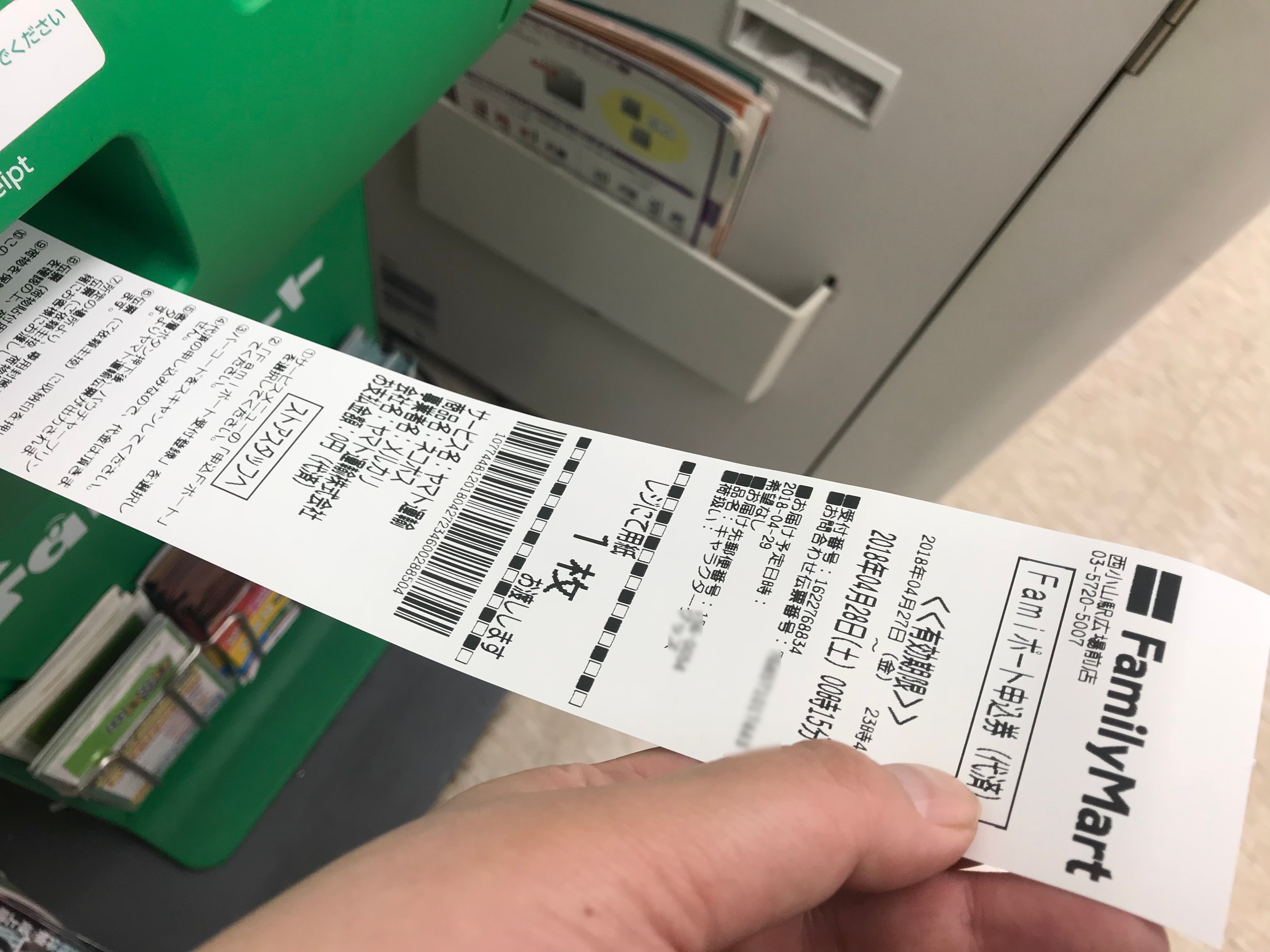 すると、QRコードが表示されました。今回はファミリーマートから発送するので、店内のFamiポートで発送の手続きを行い、出てきたレシートを持ってレジに向かいます。