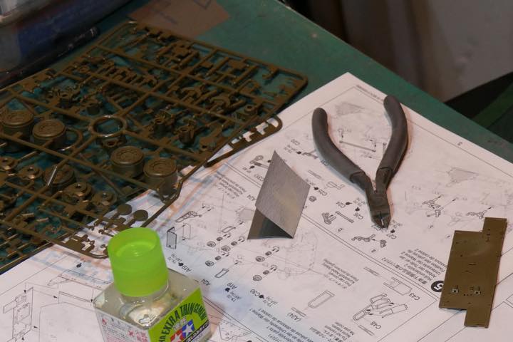 パーツを切り離した“ゲート跡”を整えるのに不可欠なのが紙ヤスリ。合わせ目などの表面をできるだけ滑らかに仕上げたい飛行機やクルマの模型とは異なり、AFVの場合は1000番や2000番といった極細目は使わなくてもいいとか。「400番台から800番まであれば十分でしょう」(長谷川さん)。ちなみにAFVとは「Armoured Fighting Vehicle」の略で、戦車を始めとする戦闘車輌のこと。