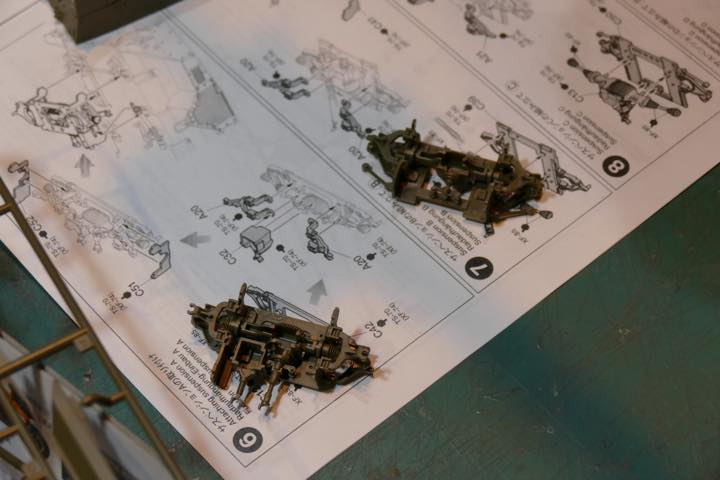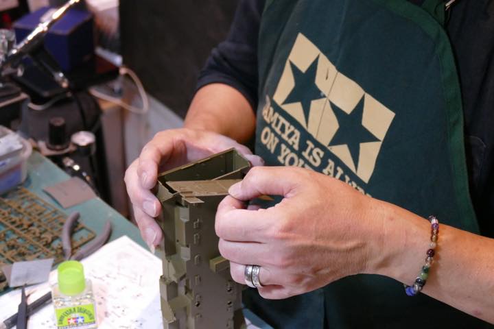 今回のキットは初めて製作するという長谷川さん。「よく確認しながら」と言いつつ、何回か誤って組み直す“弘法の筆の誤り”的なシーンも…。途中でパーツを紛失しそうになるなど、まさかの展開もあったものの、手際のよい製作により、タイヤの取り付けまで約2時間で終了。