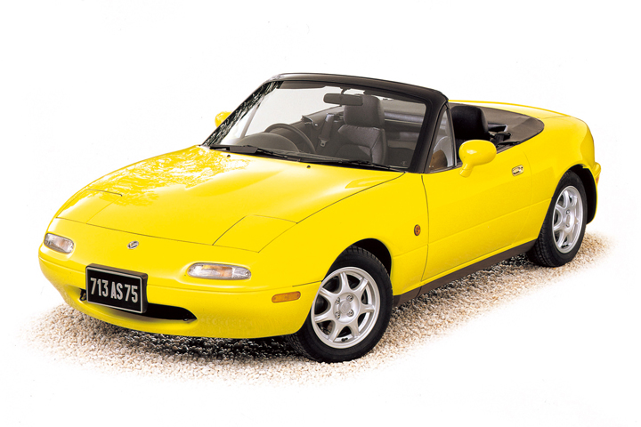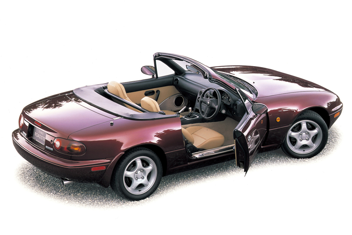 同年2月、米国シカゴ・オートショーにて「MX-5 Miata」の名前でデビューし、9月から日本での発売を開始。かつてマツダが展開していた、高級ブランド「ユーノス」第一弾として「ユーノス・ロードスター」と呼ばれた