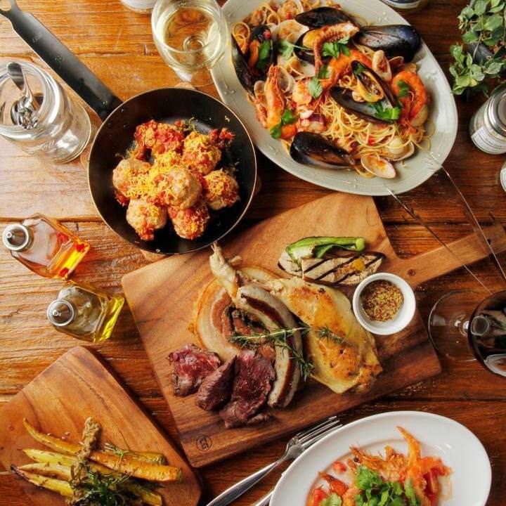 おひとり様5000円~の「カジュアルコース」ではテーブルいっぱいのお料理+飲み放題で映画のワンシーンのような食卓が味わえる。盛り上がることうけあいなしのカスタムミートボールの注文もお忘れなく!