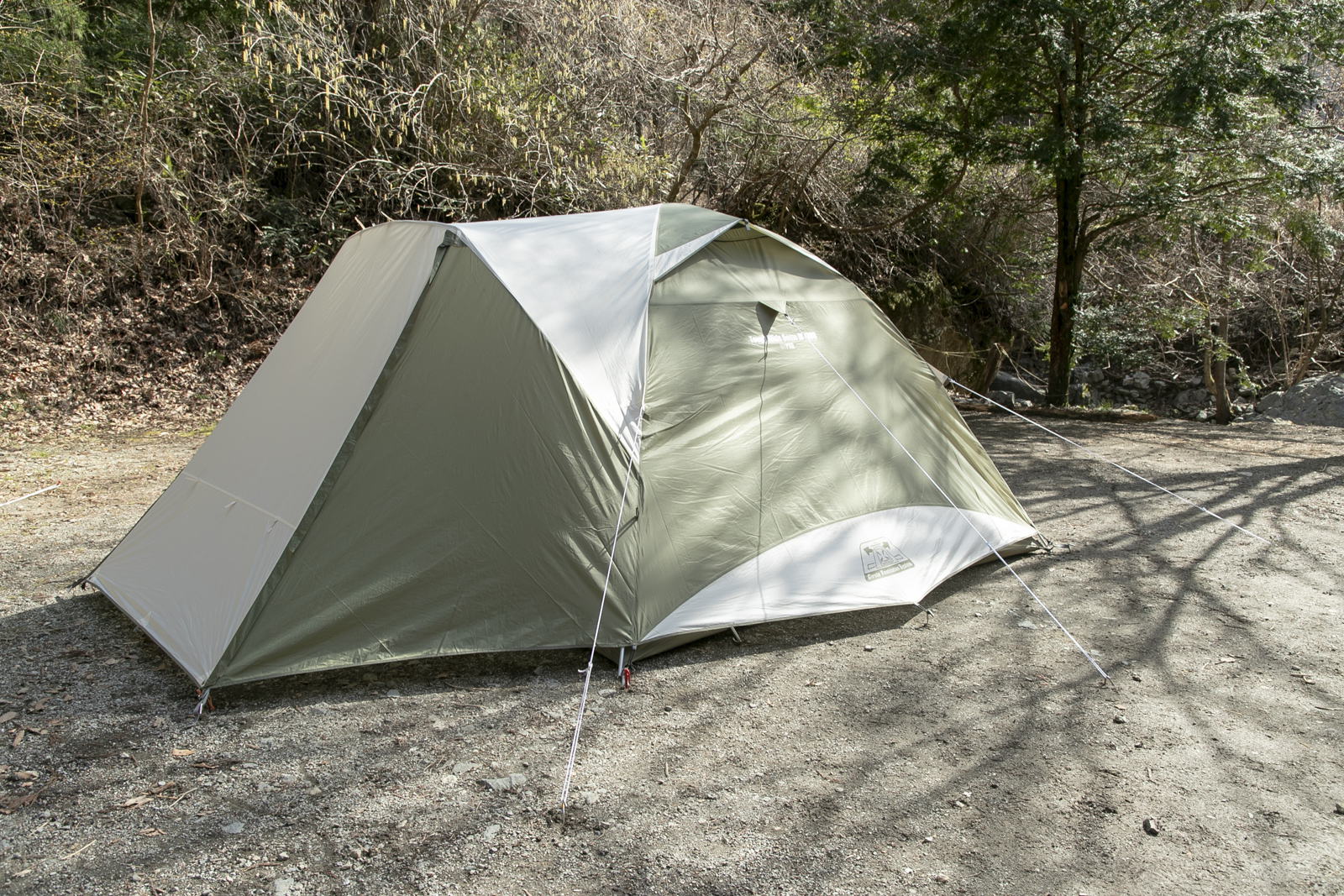 2本のフレームを交差させるドームテントは、設営がとても簡単! 空間を広げるためにキャノピーポールなど3本目、4本目のフレームを追加しているものが多いのですが、基本を押さえておけばどんなテントでも美しくたてられます。