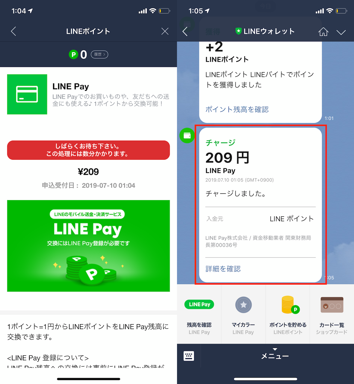 あとは少し待っていると交換した残高がLINE Payに反映されます。