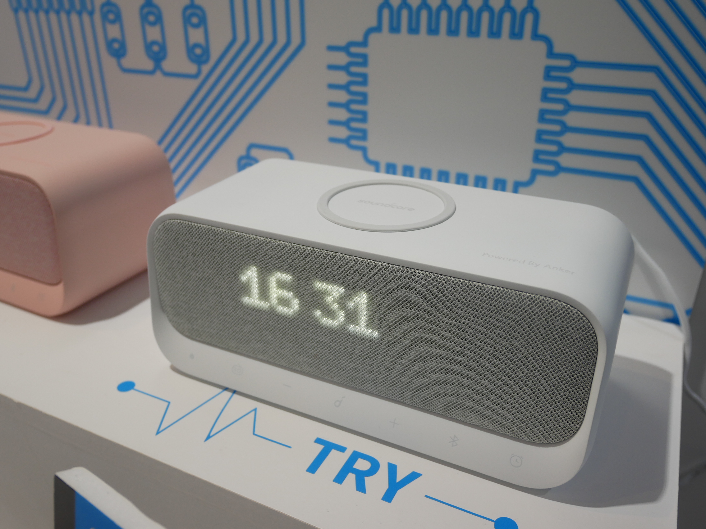 ▲今回発表された新製品のベッドサイドスピーカー「Wakey」。天面にQi対応のワイヤレス充電器を搭載し、目覚まし時計としても使える