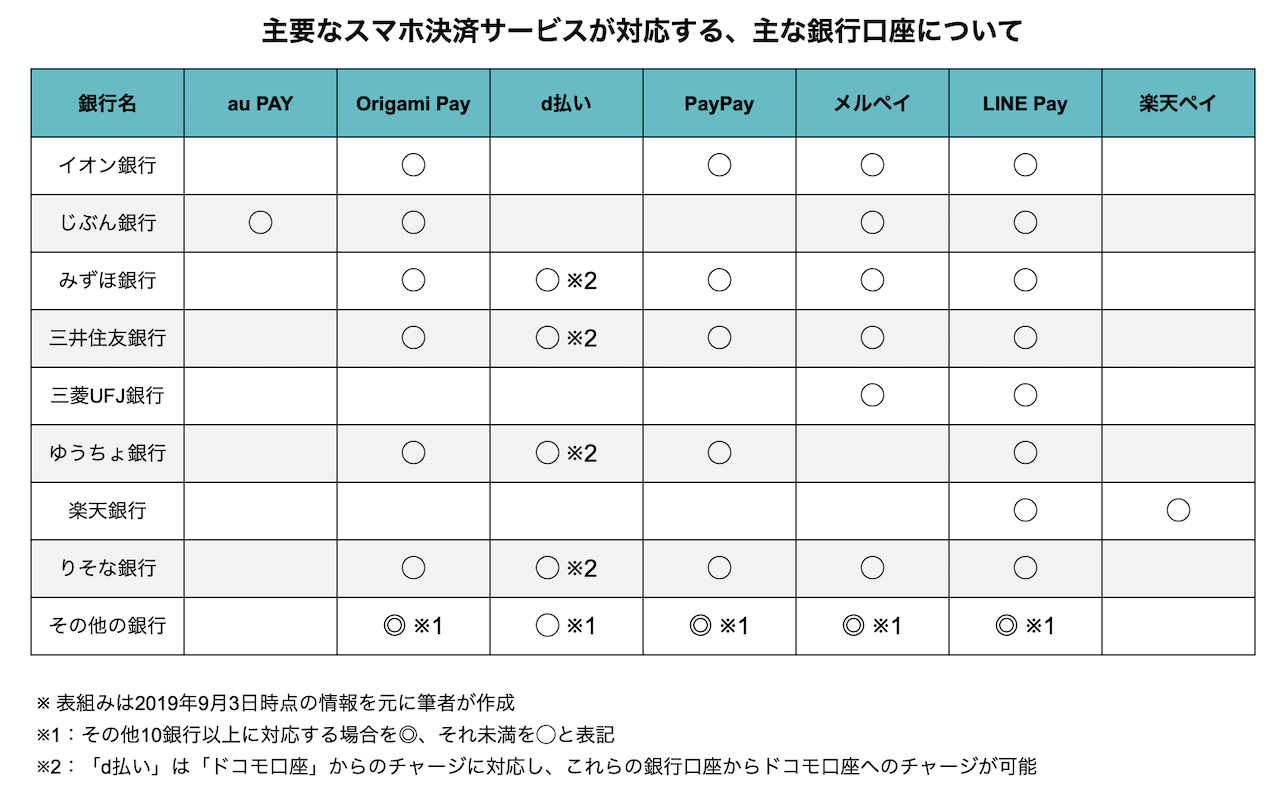 ■LINE Payは主要銀行を幅広くカバーする優等生
