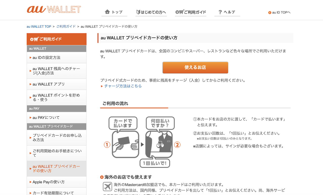 ▲au WALLETプリペイドカードについて