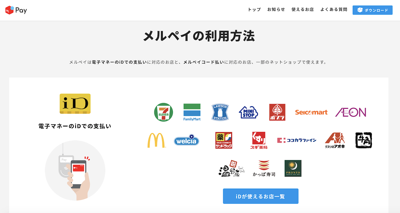 メルペイは、iOS、Androidともに「iD」対応のバーチャルカードを利用できます。FeliCa対応機種のスマホならば、非接触型決済が利用可能です。