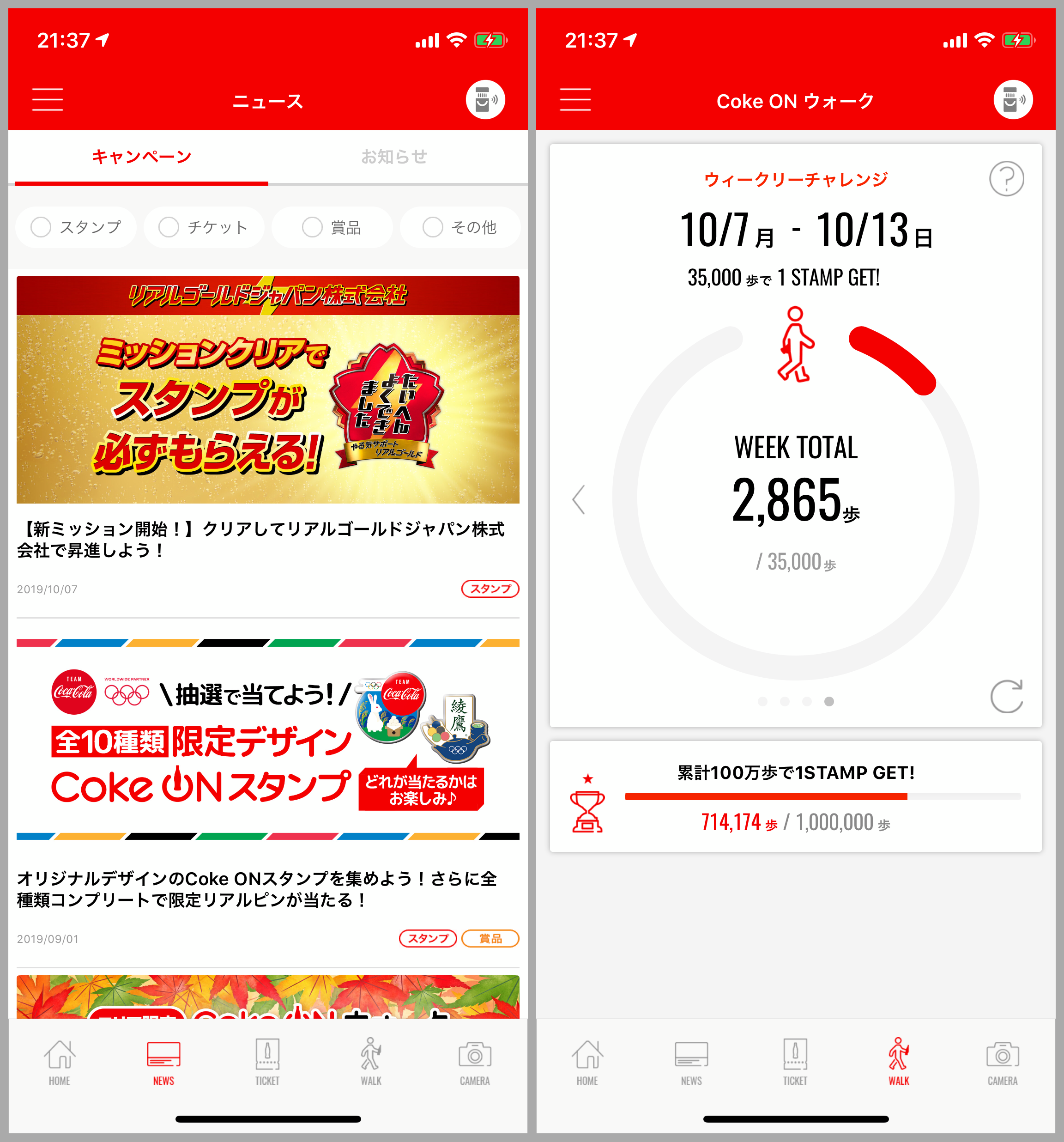 ▲こまめにキャンペーンをチェックしたり、歩く歩数を増やしたりすることも、スタンプを手っ取り早く貯める近道になる