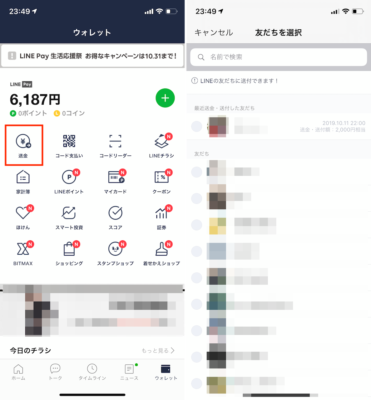 具体的な手順としては、「LINE」の「ウォレット」タブから「送金」を選び、送金する友だちを指定します。あとは、画面指示通りに金額を指定して操作を行えばOKです。