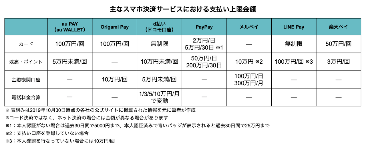 こうやって並べてみると、スマホ決済の上限金額は、意外と大きいですよね。クレジットカードを持っていなくても、そこそこまとまった金額の買い物に使えるので、うまく活用したいですね。