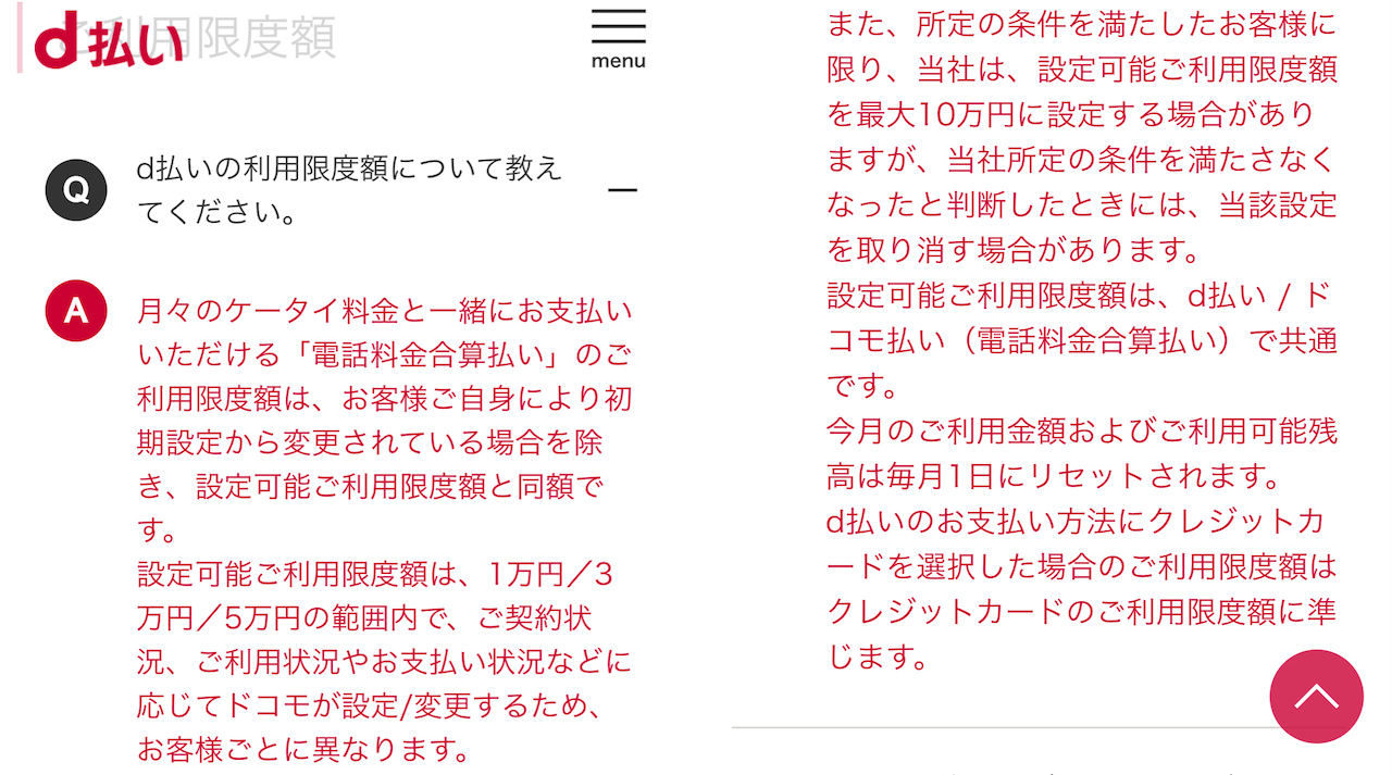 NTTドコモユーザーでは、電話料金合算支払いが使えます。その利用限度額は1万円、3万円、5万円、10万円で変動。契約状況や利用状況に依存するので、だれもが10万円を使えるわけではありません。