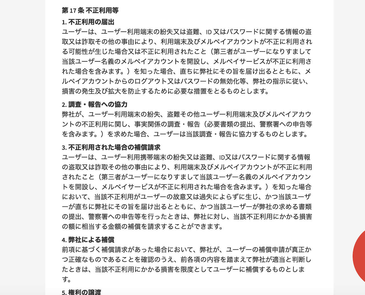 メルペイは、2019年8月15日に利用規約を改定し、不正利用時の補償について明記しました。所定の手続きを行った上で、損害額を請求できるとされています。ただし、ユーザー側の管理に責任がある場合には、補償の対象になりません。
