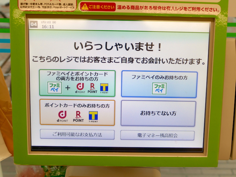 ちなみにFamiPayを使っていない人でも、電子マネーやクレジットカード、コード決済アプリを利用していれば、最初の画面で「お持ちでない方」を選ぶことで、商品読み取り>決済手段選択>決済という流れを踏んで会計が行えます。FamiPayを使う気がないから…、とあきらめずに挑戦してみてくださいね。