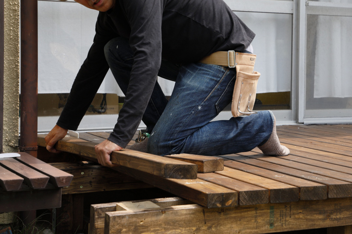 屋外で雨などの影響を受けやすいウッドデッキでは、通常の床と違い、水はけと通気を考えデッキ材とデッキ材の間に隙間を作るのだ。