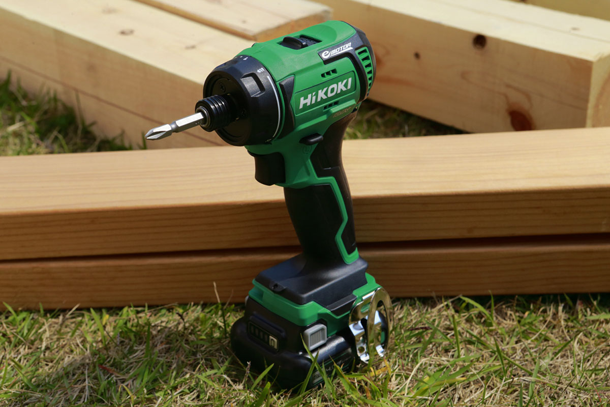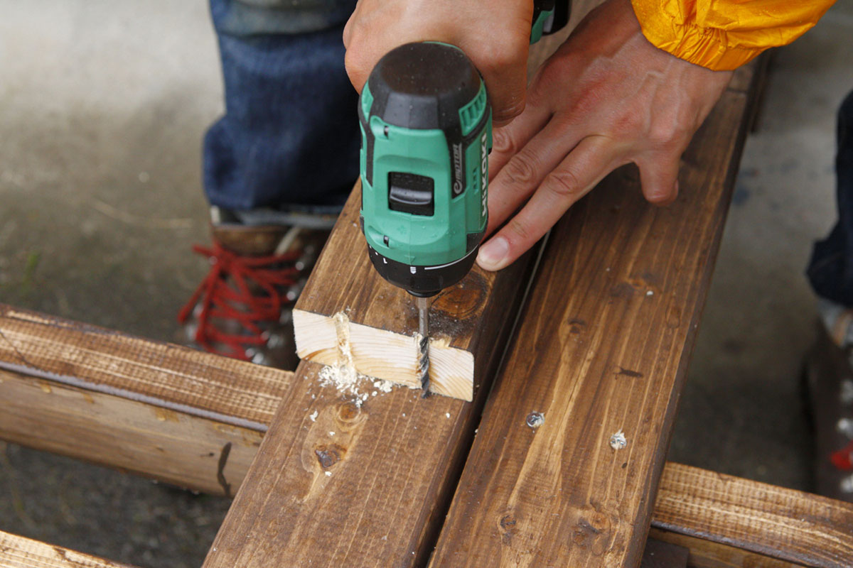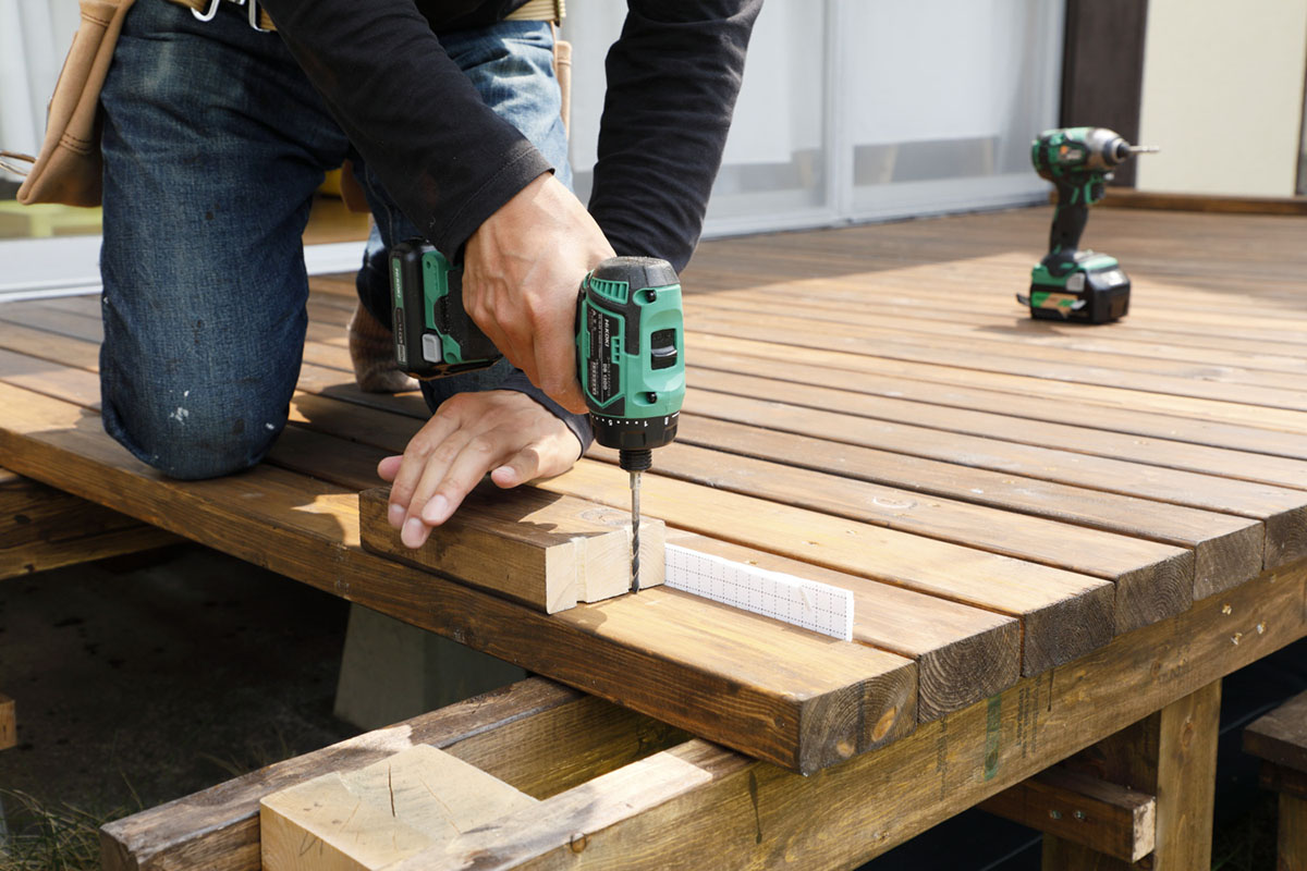 ▲1台あれば重宝する、穴開けとビス締め作業が可能なドライバドリル。トルククラッチがついているため、ビスの締めすぎを防ぐ。インパクトドライバは、打撃を与えながより強力な力を発揮するため、長いコーススレッドのネジ締めにはこちらが有用