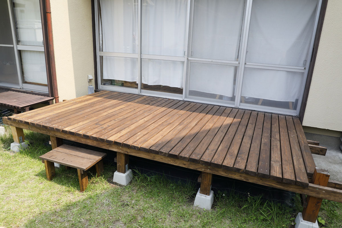 「ここのウッドデッキは土足のまま上がって良しとしますか?」