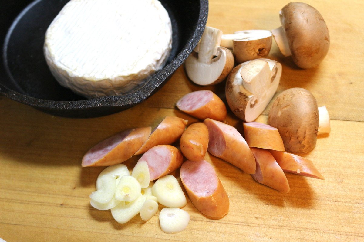 使うのは、カマンベールチーズとマッシュルーム、ソーセージ、ニンニク。