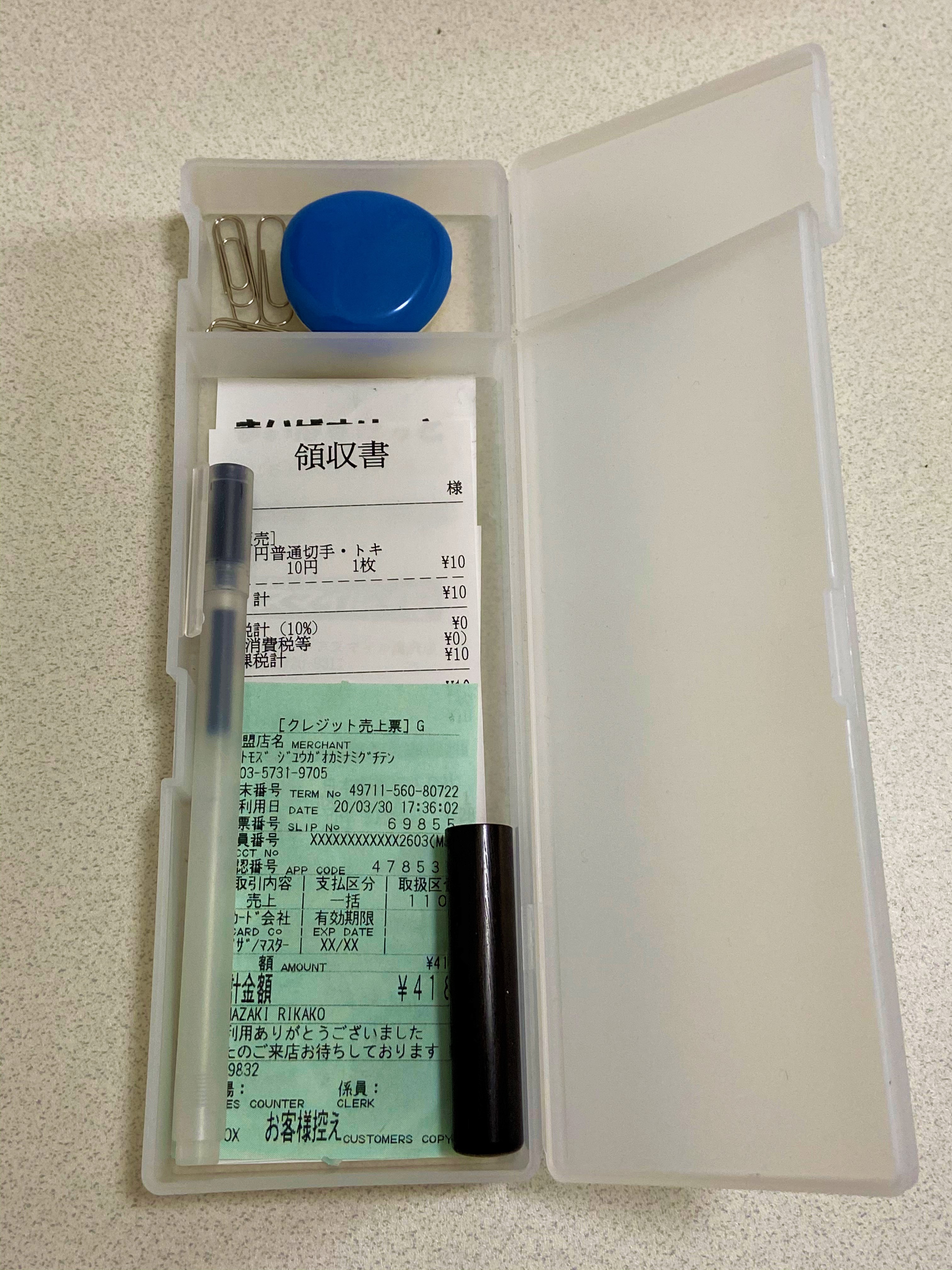 「どこにあったっけ…」となりがちな印鑑や朱肉もラクに入ります。小物入れに、レシートや領収書をまとめる用のクリップを入れたら経費精算セットの完成です。