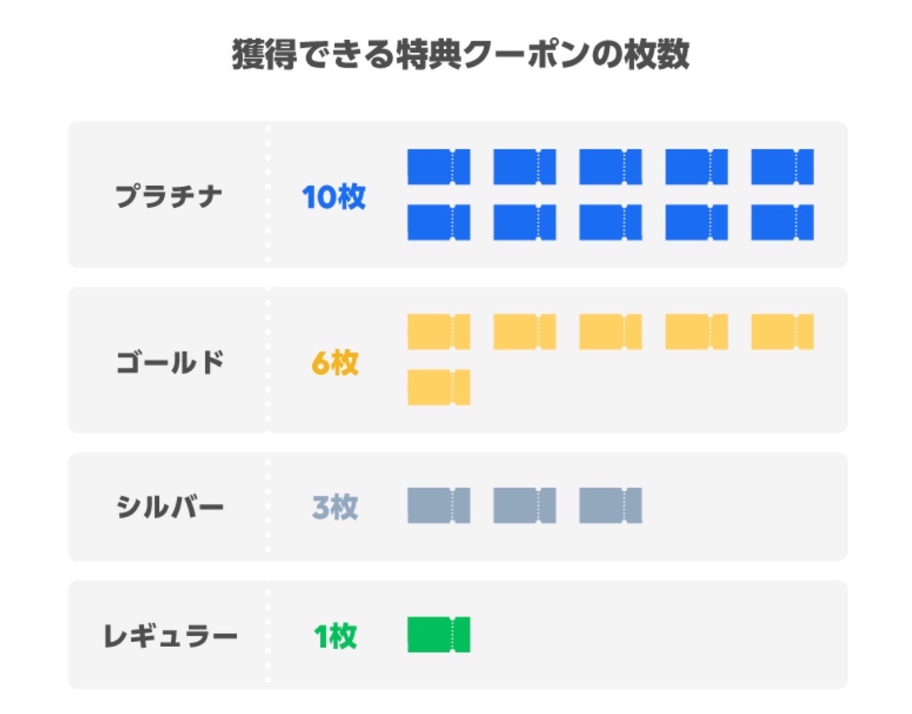 獲得できる枚数は、レギュラーなら1枚、シルバーなら3枚、ゴールドなら6枚。今後もVisa LINE Payクレジットカードを使わない予定の人は、こちらをチェックしておくことで、少しはお得に使えるはずです。
