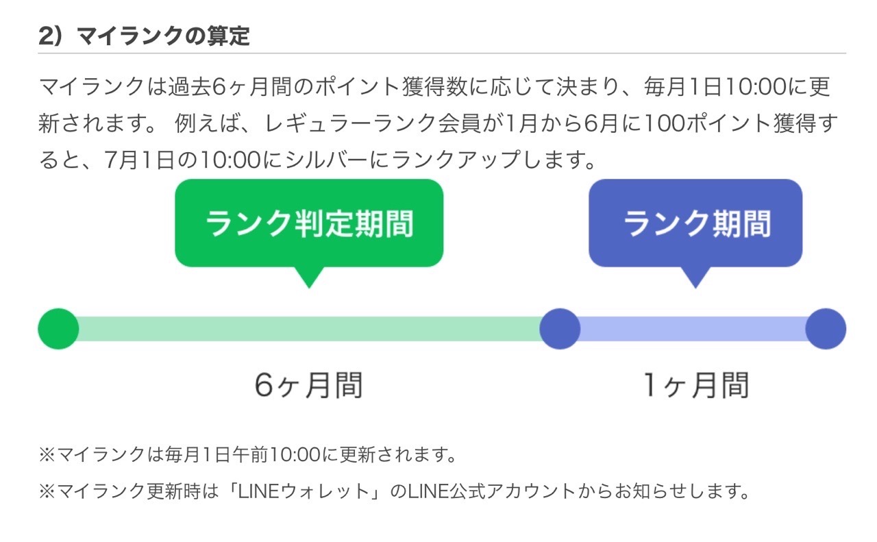 ただし、マイカラーと異なるのは、過去6ヶ月間に獲得したLINEポイントの総量で、ランクが決まるということ。ランクは毎月1日の10:00に更新されます。