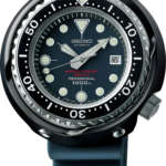 ▲チタン製の内胴およびプロテクター(外胴)が初採用となった1975年モデルのデザインを可能な限り忠実に復刻。その一方で、プロテクターにはセラミックスを、ベゼルの素材にはエバーブリリアントスチールを採用し、さらに純鉄製のダイアルを備えて40000A/mの耐磁性を確保するなどスペックを大幅に向上させた。世界限定1100本