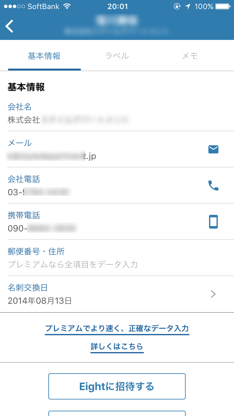 「Eight」は、iOS、Android、PCで利用できる名刺管理サービスです。保存できる枚数は無制限で、名刺を撮影してアップロードするだけで、画像から文字を人力でデータ化してくれます。