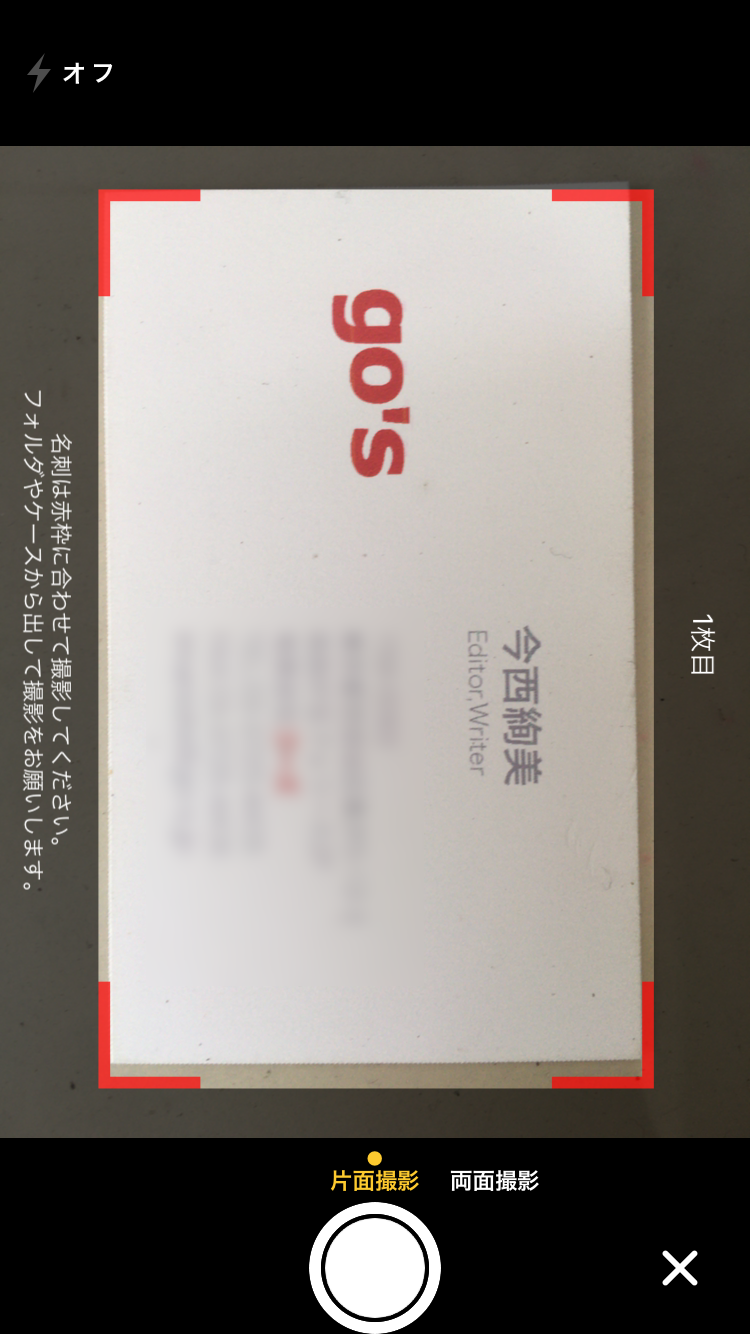 ただし、読み取りの精度はやや低く、名刺ではなく写真データとして登録されてしまったり、読み取ったデータに多少の間違いが生じたりします。