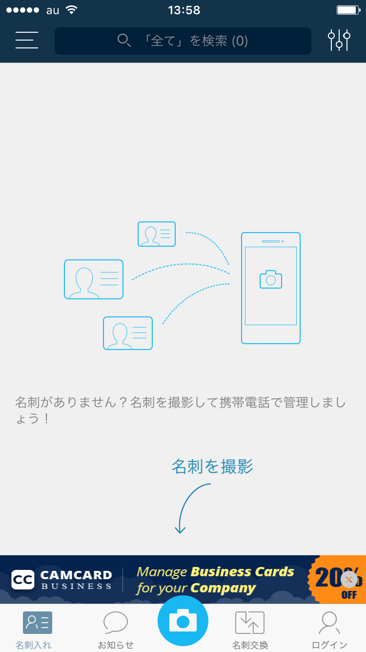 ただし、Lite版には広告が表示されます。操作がしにくいほどではないものの、仕事で使うアプリに広告が表示されるのが嫌な人は、正式版の「Camcard」(960円)を購入しましょう。