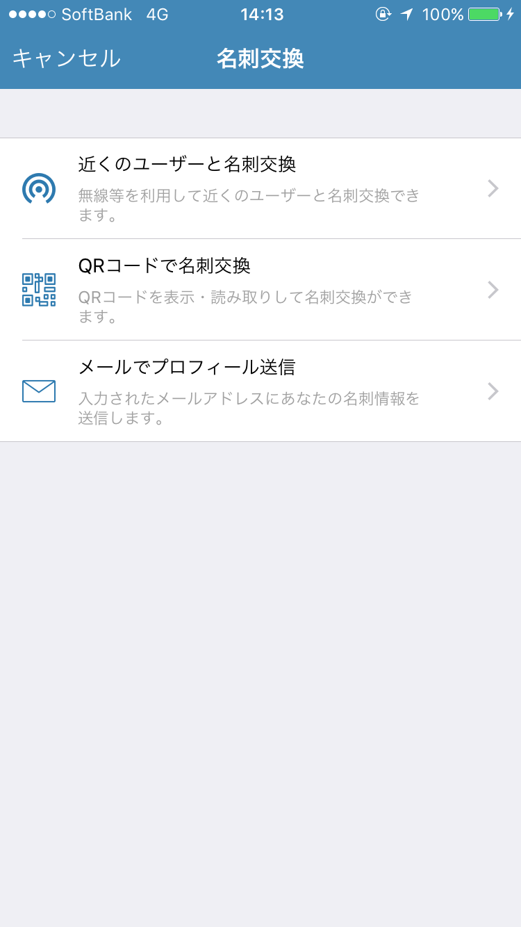 ほかにも、お互いがEightユーザー同士であれば、Eight上の自分の名刺情報をBluetoothやQRコード、メールで送信できます。名刺を切らしてしまったときに、相手がEightユーザーであればこの機能はかなり役立つでしょう。