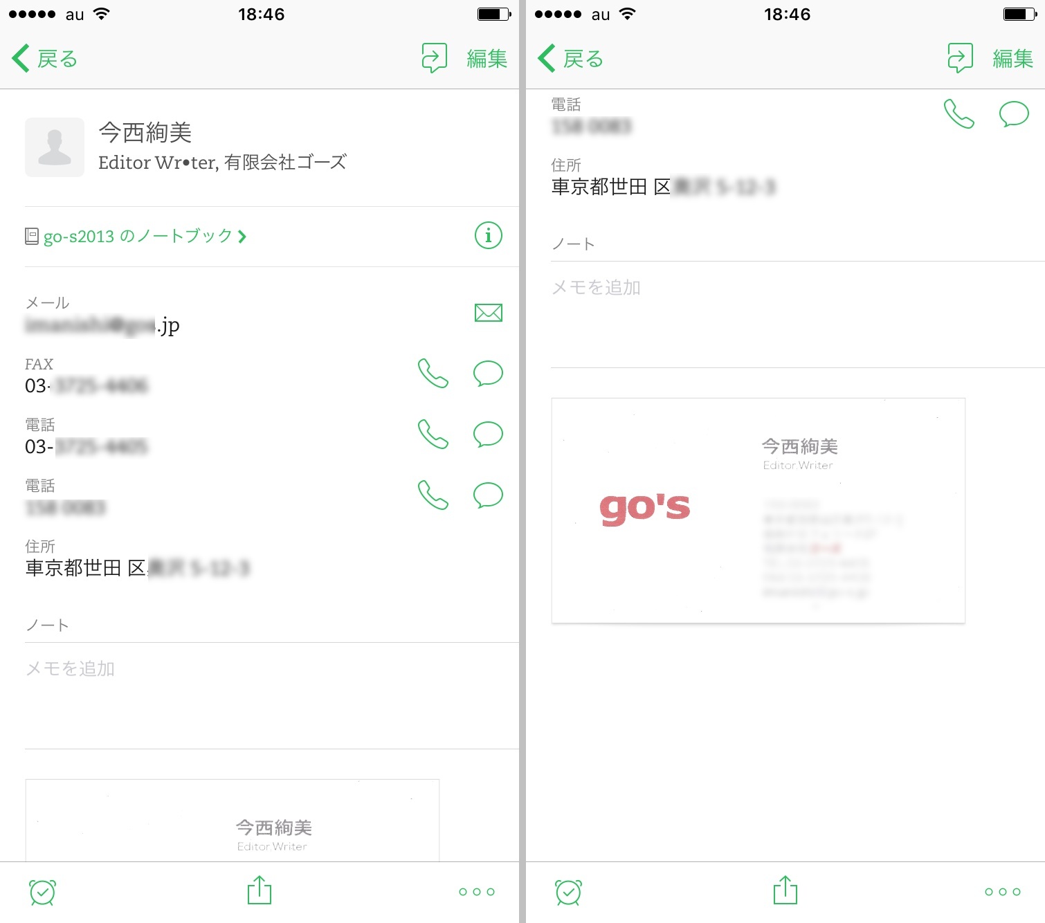 登録後に内容を改めて確認する必要があるものの、Evernoteで名前を検索すれば検索結果に表示されるので、名刺管理アプリと同じ感覚で使えます。