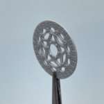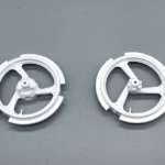 ホイールに取り付けるブレーキディスクは、肉抜き穴などもシャープに再現されていますが、プラ製ゆえの厚み(約1mm)が気になります。そこで、エッジ部分を裏からクサビ状に削って(厚み0.5mm程度に)ディスクローターが薄くシャープに見えるように加工します。