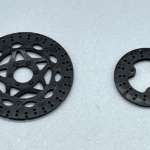 ▲加工前のフロントブレーキディスク(左)とリアディスクブレーキ(右)