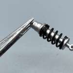 バイクモデルは実車のアルミやスチール、あるいはクロームメッキされた金属の質感をいかにリアルに再現するかがポイントになります。フロントフォークのアウター部分は、アルミシルバーで塗装すれば良いのですが、インナーチューブはクロームメッキされているため、塗装ではどうしてもリアルな仕上がりにならないのが悩ましいところです。
