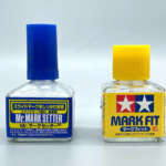▲「Mr.マークセッター」(左)は軟化剤に糊の成分が含まれているので、デカールをよりしっかりと定着させられる。デカールとの相性があるので使用に関しては必ず事前テストが必要。タミヤ製「マークフィット」(右)は効果がソフトで、糊の成分を含まない軟化剤だ
