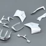 ▲ホワイトでエアブラシ塗装が完了したタンク、カウルといった外装パーツ。このあと最低でも24時間は塗装を乾燥させる