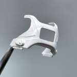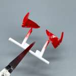 ▲希釈した「EX-03 ホワイト」をエアブラシで2回塗装(塗装→乾燥→塗装)したフロントカウル下部。ビス穴に爪楊枝を差し込んで持ち手にすると吹き付け塗装が楽にできる