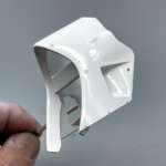 フロントカウルとサイドカバーは、それぞれ3パーツで構成されていますが、接着面積が少ないので、強度確保のため接着後にしっかりと乾燥させてください(特にサイドカバー)。