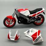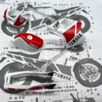 ▲水分と気泡を押し出してデカールをしっかりとパーツ表面に密着さたらTZR250のロゴとYAMAHAのデカールを貼る