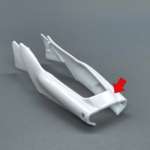 ▲シートカウルも左右をつなぐパーツ(矢印部分)の接着面積が少ないので、組み立て後の強度を確保するために接着剤の乾燥時間をしっかりと取る