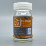 クリア塗料は、キットで指定されているMr.カラー「C46 クリアー」をはじめ、各社から発売されています。今回は、より光沢と塗装後の塗膜が強いガイアノーツExシリーズの「Ex-03 Ex-クリアー」を使用し、エアブラシで塗装しています。