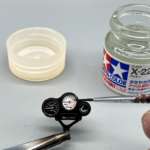▲メーターのデカールが乾燥したら上から水性アクリル塗料のクリアを塗装(デカールの上に塗料をポトッと垂らす感じで)し、メーターガラスを再現