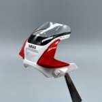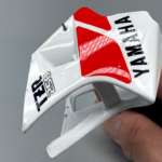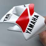 第3回の「デカール編」でカウリングにTZRの特徴でもあるストロボラインのデカールを貼りました。白いカウルに赤いラインが入ったことで、ぐっとTZRの完成が見えてきた感じですね。